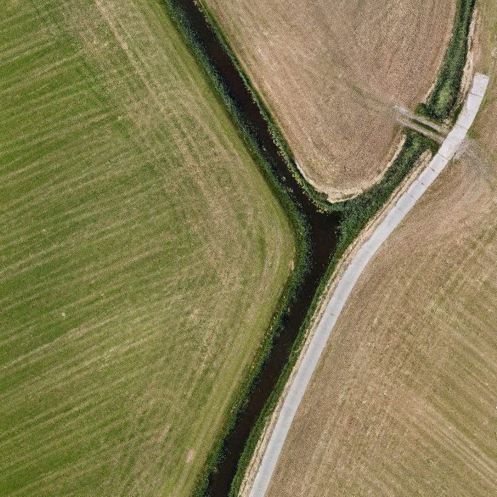Een belangrijk doel van een luchtkaart kan zijn om het nauwkeurig weergeven van landgrenzen, zowel in hectaremeting als visueel te hebben. In de bovenstaande afbeelding is een luchtkaart te zien waarbij uitsluitend het essentiële, de perceelsgrenzen, in beeld is gebracht. Iedere opdracht vraagt om een unieke aanpak, wat resulteert in een efficiënte en doelgerichte uitvoering van elk project.